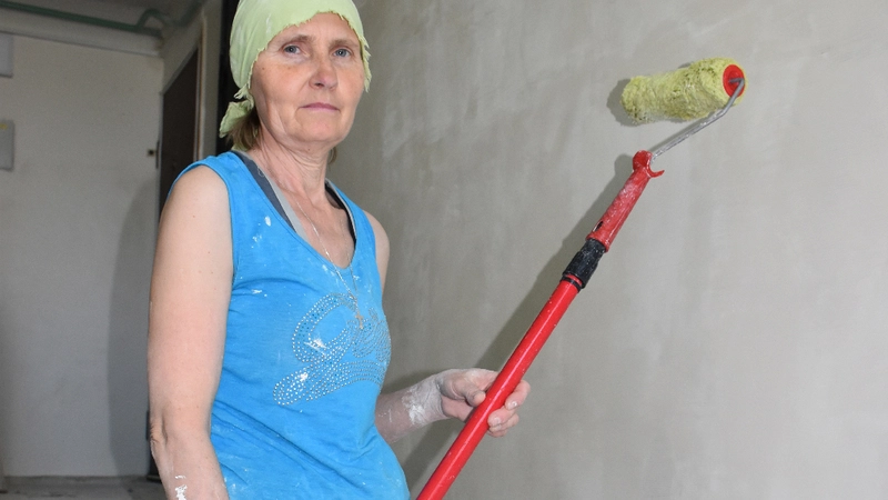 Со стен удаляется старая штукатурка, поверхность грунтуется. По уложенной сетке производится штукатурка, затем – шпаклёвка. Завершающим этапом станет покраска. Данную работу довольно оперативно, качественно, со знанием дела выполняет маляр — штукатур Алла Никитенко.