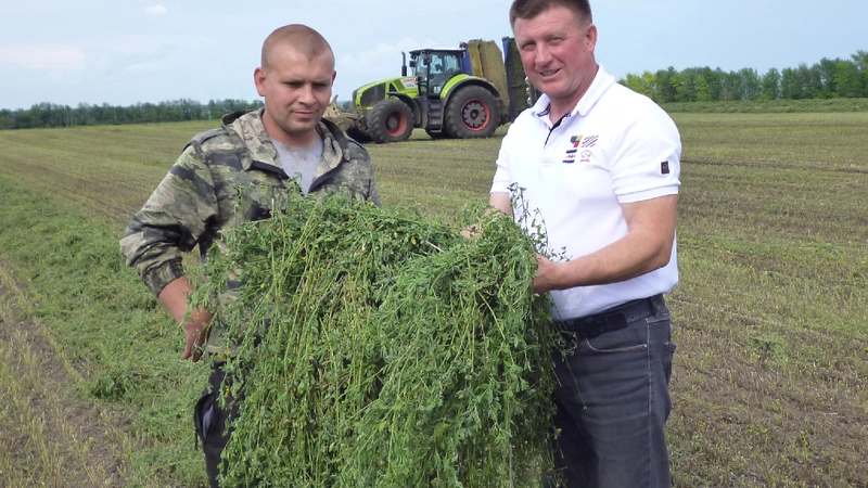 «Смотрите, какая трава! – председатель СПК Александр Иконников поднимает из валка тугой, так и не успевший брызнуть сиреневым цветом пучок. – Самое время убирать: к началу бутонизации люцерна накапливает наиболее высокий питательный запас. Упустил сроки – и в период цветения трава потеряет почти треть белка и каротина. Этого мы и стараемся не допустить».