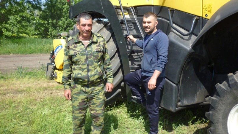 И ещё. При приготовлении корма в него вносят консерванты. В былые времена их из вёдрами разбрасывали по траншее. Теперь же эта операция совершается прямо в поле, при подборе валков. Эту работу поручили водителям Александру Николаевичу и Александру Сергеевичу Бекетовым, которые круглые сутки доставляют воду на поле и готовят из бонсилажа «коктейль», заправляя им ёмкости сеноуборочных комбайнов. При нас она осуществлялась в «Нью-Холанд», управляемого Артёмом Мирошниченко. Его товарищи по отряду Александр Ельчанинов и Григорий Сорокин справились с этой операцией раньше и теперь бесперебойно загружали грузовики измельчённой сдобренной консервантом массой.