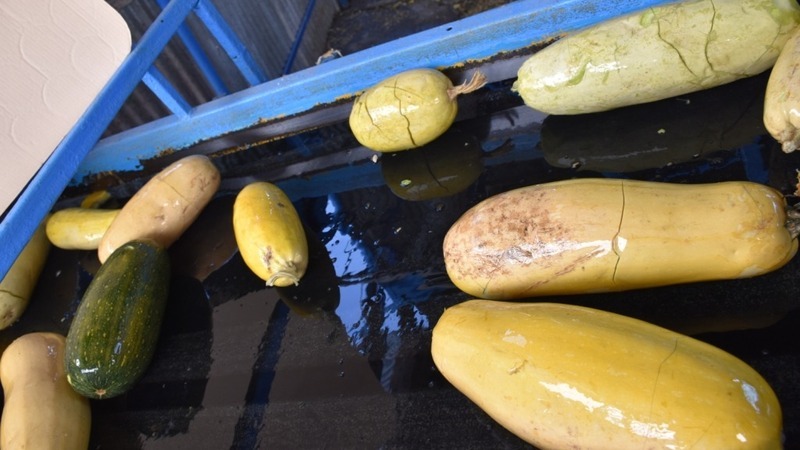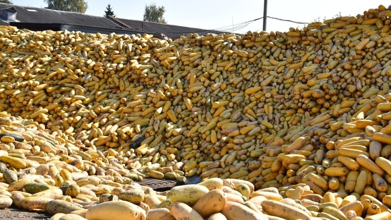 Первой площадкой, на которой мы остановились, стала зона приёмки кабачков. Сюда они доставляются большегрузными автомобилями как от основного многолетнего поставщика – общества с ограниченной ответственностью «Берёзка», что в Яковлевском горокруге, так и других регионов, таких как Липецкая, Воронежская и Волгоградская области.