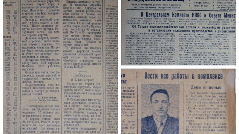 Были активны в труде и другие пионеры. Так, в колхозах «Память Кирова», имени Хрущёва и других «многие ребята сносили снопы в копны на косовице, отвозят зерно от комбайнов, очищают хлеб на токах». Газета с гордостью сообщает о том, что «13-летний пионер Антон Варнавский в Валуях уже выработал 86 трудодней», а за хорошую обработку кукурузы переходящий вымпел обкома ВЛКСМ вручён учащимся Засосенской средней школы.
