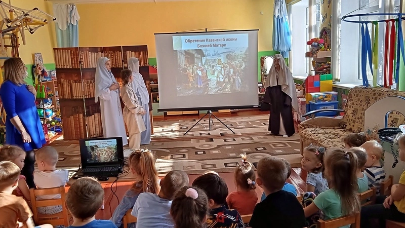 «В одной из них юные актёры поведали историю обретения и прославления чудотворного образа Казанской иконы Божией Матери, о её чудесах и судьбе. Главный вывод постановки о восьмой христианской заповеди „Не укради“ – не жадничать, не обманывать, не брать чужого. Герои сказки „Божья коровка“ показали, почему её стали называть „божьей“ и что, когда люди просят её полететь на небо и исполнить их желание, она с радостью это делает, ведь она – „божья“. И она точно знает, что каждый может стать счастливым, нужно просто делать добро другим», – добавила библиотекарь – инициатор проекта.