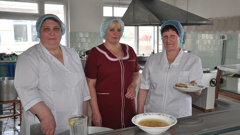 Школьная столовая стала определяющим местом для Светланы Петровны, где четверть века она кашеварит. Более десяти лет работает на пищеблоке Татьяна Николаевна, а вот Ирина Александровна всего лишь три месяца перенимает профессиональные качества у шеф-повара, хотя и имеет профессию пекаря — кондитера. С 7 часов утра на пищеблоке они занимают рабочие места и с душой приступают к своему привычному делу.
