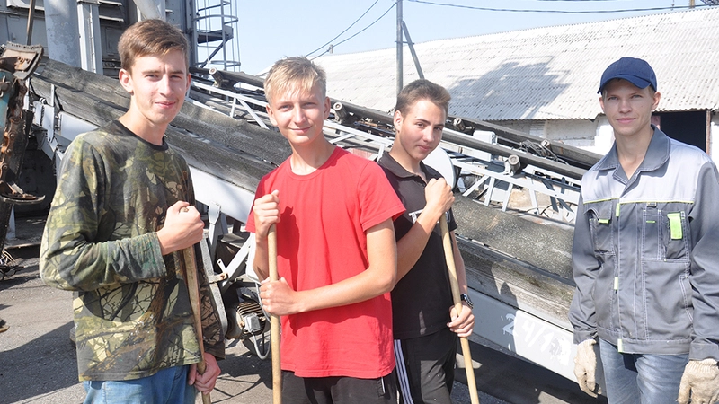 Здесь не только работники предприятия осуществляют подготовку складских помещений к приёму нового урожая (проведён ремонт зерновых сушилок, механизмов транспортёров, в производственную лабораторию приобретено усовершенствованное оборудование) но и дают возможность студентам и школьникам заработать и получить первый трудовой опыт.