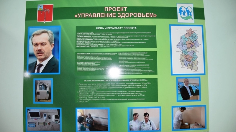 Первой, с кем встретился глава региона, была врач семейной медицины Светлана Банченко. Она рассказа Евгению Савченко, что на обслуживании у неё находится 1956 человек, в том числе 287 детей. По мнению Светланы Рафаиловны, проект «Управление здоровьем» внёс качественно новые изменения в систему здравоохранения области. На объектах сельских учреждений здравоохранения проведены работы по их капремонту, появилось новое современное диагностическое оборудование, а технологии телемедицины значительно расширили возможности сельских врачей. Благодаря имеющемуся высокоскоростному доступу в сеть интернет доктор теперь может не только проводить консультации со своими коллегами как из райцентра, так и из Белгорода, но и с их помощью постоянно повышает уровень своих знаний, путем участия в различных вебинарах.