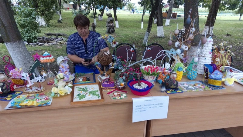 На свежем воздухе гостям была представлена книжная выставка, подготовленная заведующей Верхососенской модельной библиотекой Любовью Кутафиной. Радовали глаз и красочные поделки, выставленные коллективами детских садов поселения. Дмитрий Нечаев, директор Верхнепокровского сельского дома культуры, показал мастер-класс по изготовлению народных инструментов.