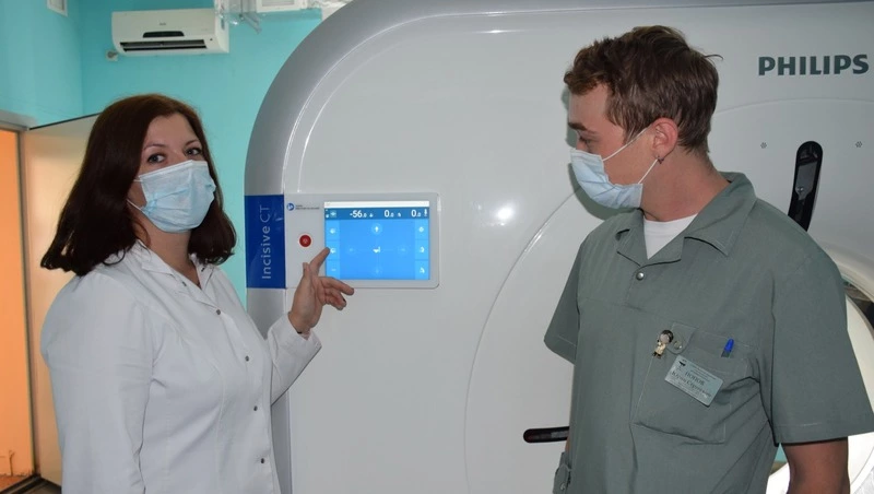 В рамках национального проекта «Здравоохранение», региональной программы «Развитие здравоохранения Белгородской области» в этом году в Красногвардейскую центральную районную больницу поступило новое медицинское оборудование. Наша база пополнилась тремя аппаратами ультразвуковой диагностики экспертного класса, передвижным рентген-аппаратом, современным оборудованием для реанимационного отделения, в том числе новым аппаратом искусственной вентиляции лёгких. Но, пожалуй, самое долгожданное событие в системе первичного звена оказания медицинской помощи – это установка аппарата спиральной компьютерной томографии (СКТ).