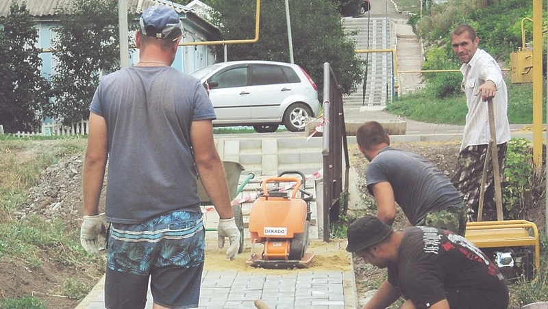 А находятся ещё люди, которые не только не помогают в благоустройстве, а ещё мешают, предъявляют к людям завышенные требования. Не так давно довелось наблюдать такую картину. На одном из переходов через канаву, идущую от консервного завода, строители прокладывали тротуарную плитку.