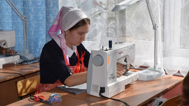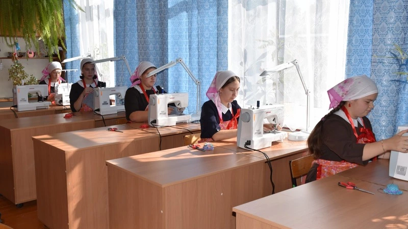 Занятие продолжается. За раскройным столом школьницы обсуждают новые модели. То и дело раздаётся звук работающей швейной машинки. Учитель подходит то к одному столу, то к другому: поправляет нитку, напоминает о технике шитья, помогает, если что-то не получается. Смотришь на эту картину и невольно думаешь: таким мастерицам через пару лет можно доверить новое платье…