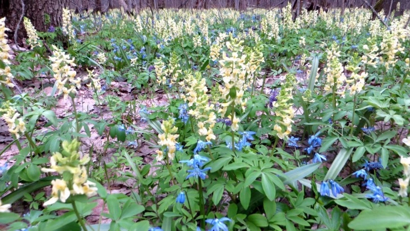 Кроме пролески сибирской ранней весной цветёт медуница, первоцвет, зубянка, ветреница, фиалка, мать-и-мачеха, чистяк весенний, копытень европейский, хохлатка, гусиный лук, тюльпаны. И среди них в Красную книгу Белгородской области и нашего Красногвардейского района занесены: пролеска двулистная, хохлатка Маршала, тюльпан Биберштейна, зубянка пятилистная, гусиный лук, ветреница дубравная, петров крест чешуйчатый. Запомните эти цветы и относитесь с ним бережно.