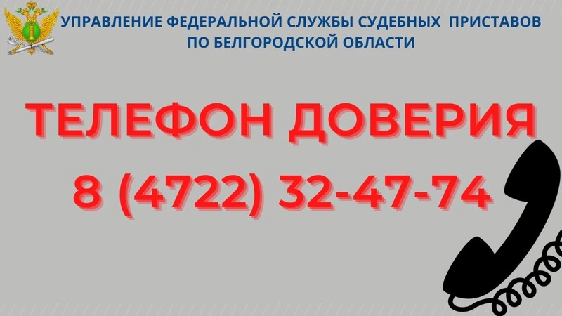 Жители Белгородской области могут сообщить о факте незаконных действий со стороны работника управления Федеральной службы судебных приставов, позвонив на «телефон доверия» по номеру 8 (4722) 32-47-74. Как сообщили в ведомстве, он работает в автоматическом режиме круглосуточно.
