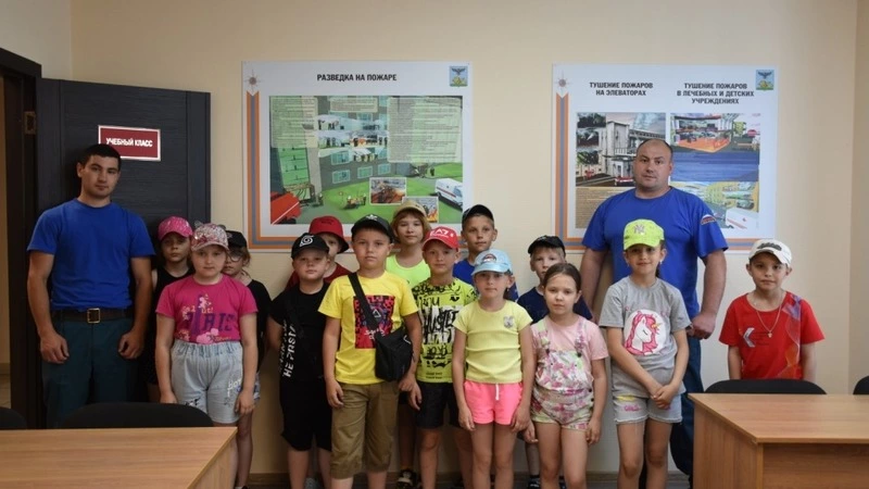 Отряд № 6 учащихся младших классов из пришкольного лагеря Засосенской средней общеобразовательной школы имени Героя Советского Союза Николая Яценко посетили пожарно-спасательную часть № 27 города Бирюч. Её сотрудники провели для гостей экскурсию по территории подразделения.