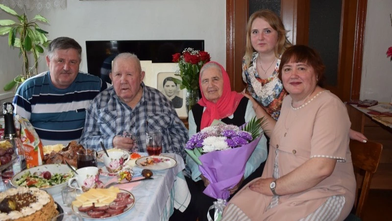 После чаепития гости с большим интересом разглядывали фотоальбомы и заслуженные награды семьи Черменёвых. Иван Антонович с гордостью надел пиджак с медалями и орденами для фотосессии, а Евдокия Ивановна вместе с дочерью Светланой спели песню «Домик окнами в сад», которая стала красивой ноткой завершения праздничной встречи.