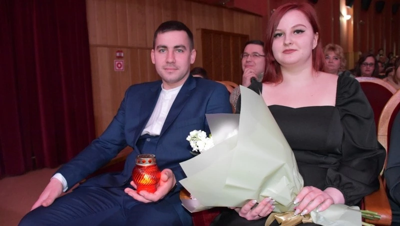 В рамках открытия Года семьи супруги-юбиляры передали лампадку с символичным огнём семейного очага молодожёнам Ивану и Дарье Перепелицыным. Они скрепили свой союз узами брака накануне праздника.