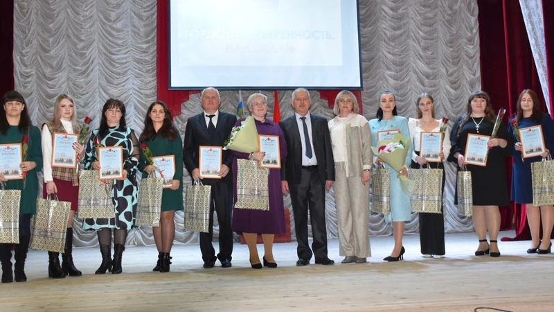 Центральным событием торжественного мероприятия стало награждение победителей муниципального этапа конкурса профессионального мастерства педагогов «Учитель года». По его итогам в номинации «Лучший учитель» победу одержала учитель русского языка и литературы Палатовской средней школы Юлия Горяева. Преподаватель математики Калиновской школы Анна Немец признана лучшей в номинации «Педагогический дебют». «Воспитателем года» стала Евгения Долженко из детского сада села Самарино, а «Лучшим учителем-логопедом» – Елена Красноруцкая, представляющая детский сад «Росинка» города Бирюч. В номинации «Сердце отдаю детям» лидировали педагог дополнительного образования Станции юных натуралистов Елена Костенко и её коллега из Дома детского творчества Анна Лесникова.