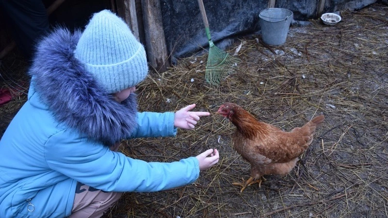 Из открытых дверей сараев выходил тёплый пар. Животные обескуражено наблюдали за нашей экскурсией, и, действительно, все они были одной, красно рябой масти. Хозяйка показала мне и индоуток, которые ежегодно приносят им большой приплод, и остановила мой взгляд на рыжей курице, которая попятам ходила за девочкой Сашей.