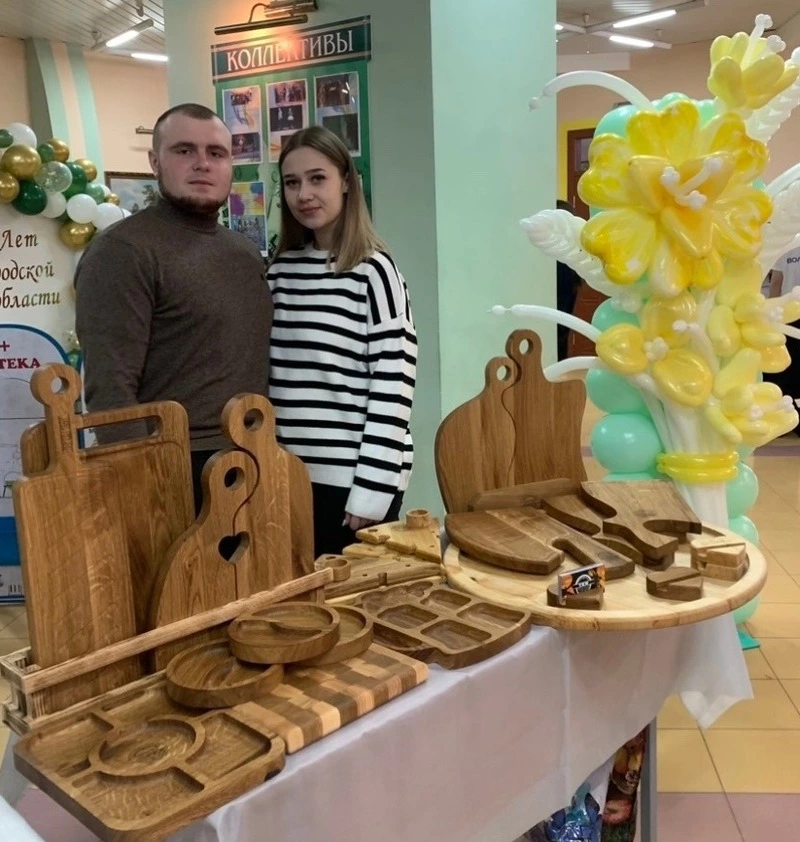 Приносить доход производство столярных изделии, по словам Артёма, стало совсем недавно, спустя практически год после оформления самозанятости. Сейчас это является основным видом деятельности молодого мастера. Реализация продукции происходит через частные торговые точки и посредством сети Интернет. В специально созданных группах в соцсетях клиенты могут посмотреть готовые изделия и обсудить условия заказа. Этим занимается жена Артёма – Ангелина. Так что бизнес можно смело назвать семейным.