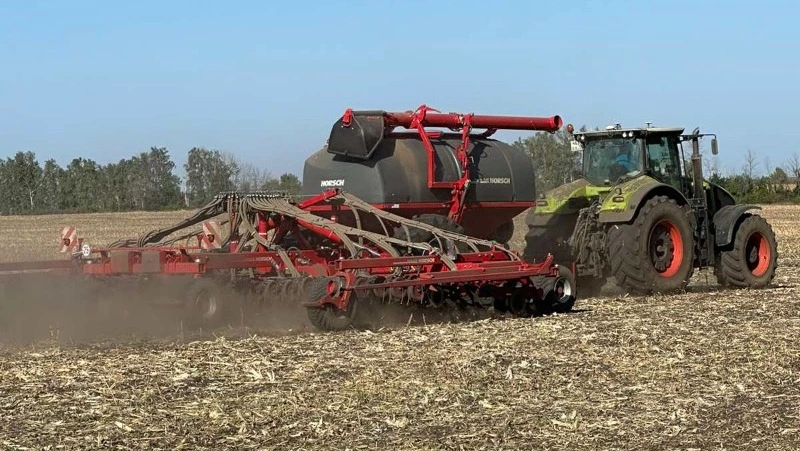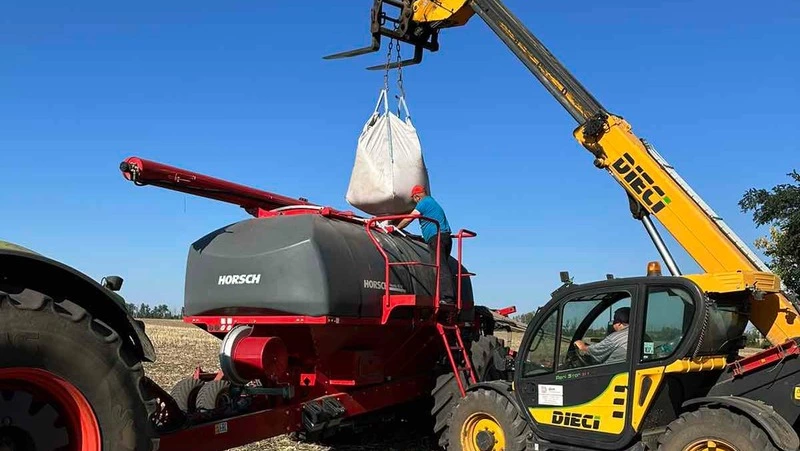 … К краю загонки 76-гектарного массива, расположенного в урочище Лихоносово, подходит сеялочный агрегат, который мы ждём. Водитель КамАЗа Вячеслав Котов и механизатор «Диеци» Александр Малыгин, не теряя времени, загружают сеялку «Хорош-Пронто-10НТ» семенами и удобрением. В ней два бункера, каждый из которых вместительностью пять тонн. Семян хватает на обработку 20 гектаров засеваемой площади, а минеральных удобрений – на 50. Последних каждый из них получает по три центнера.
