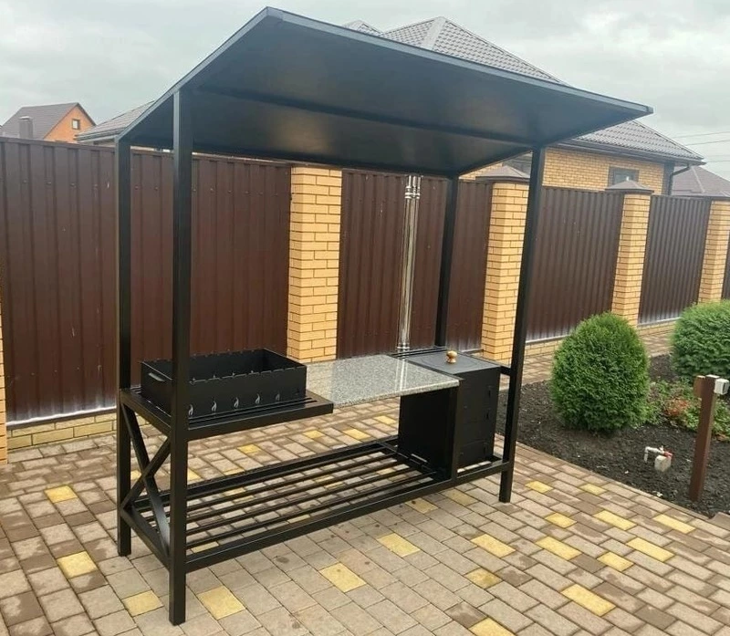 Первой конструкцией стал у него крытый мангал, который был тут же выставлен мастером на продажу в городе Алексеевка. К удивлению, его так никто и не купил за четыре года, и теперь он служит выставочным экземпляром у его дома. К новой деятельности Александр подготовился основательно: оформил статус «самозанятый», приобрёл все необходимые инструменты, экипировку и с энтузиазмом принялся творить. Соратником и помощником на новом поприще для Александра Николаевича стала его спутница жизни Людмила. Она полностью разделяет с ним его замыслы и идеи. Ведь Александр Пупынин не просто творческий человек, он обладает богатой фантазией и трудоспособностью, что даёт возможность ему изготавливать эксклюзивные конструкции. Например, новоиспечённый сварщик скоро разочаровался в привычных уличных столиках с деревянными столешницами. Он предпочёл им более качественный материал – керамогранит.