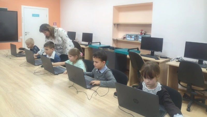 Школа была оснащена необходимым оборудованием: тележкой для ноутбуков «Мобильный компьютерный класс». Для работы на занятиях по алгоритмике ребята используют 10 ноутбуков.