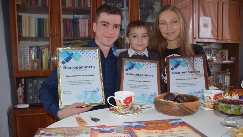 За вклад в развитие волонтёрской деятельности в Красногвардейском районе все члены семьи Калашниковых отмечены Благодарностями. В нашей неспешной беседе, которая проходила за круглым столом и ароматным чаем, участвовала вся семья Калашниковых. Спустя некоторое время «главный бобёр» притомился и ушёл в другую комнату, лёг на кровать. Людмила Александровна, прабабушка Миши, рассказала, как мальчик с нетерпением ждёт той субботы, когда она поправится и сможет поехать вместе с ними на заготовку брёвен. Он хочет познакомить её со своими друзьями, настоящими солдатами, а также с тружениками тыла – добрыми лесорубами.