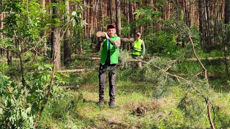 Мария с сыном стали собирать ветки, которые остаются после очистки сосен. Незаметно подошло время обеда. Организованная кухня накормила всех работников горячим обедом, приготовленным на соседней поляне. По словам наших активистов, усталость ощущалась и в ногах, и в руках, но что-то придавало сил, и они трудились до самого вечера.