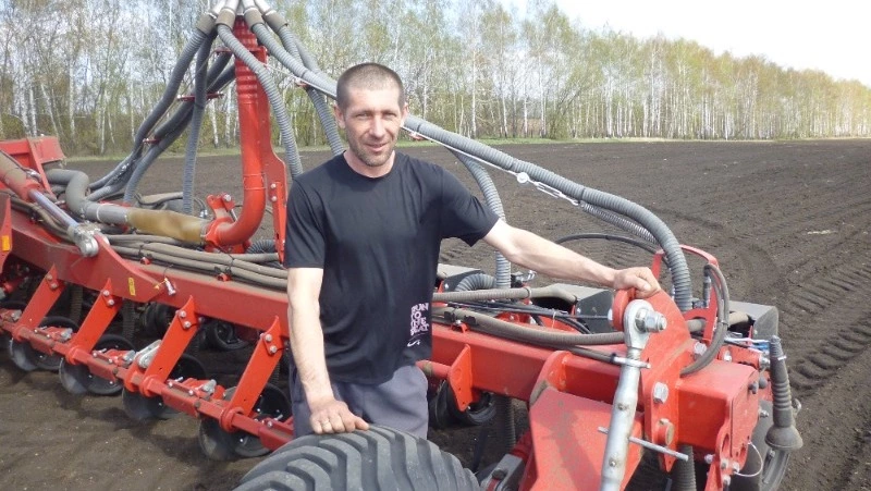 Мы стоим у 108-гектарного поля, что на границе с Новооскольским муниципальным округом у села Большеивановка, с мелким уклоном сбегающим в сторону села Уточка. По полю бойко идёт посевной агрегат. У лесной полосы, обрамляющей участок, он остановился, чтобы принять определённую порцию семян и минеральных удобрений. Механизатор Иван Приходько легко спустился на мягкую землю. И, как всегда, на лице его появилась простая и чистая улыбка. Ростом он удался, подвижен. Говорит просто, в каждом слове точный расчёт, уверенность. Механизаторский стаж начал свой отсчёт с 15 лет. Начинал с помощника комбайнёра, а сейчас управляет современным высокопроизводительным «Аксион – 940».