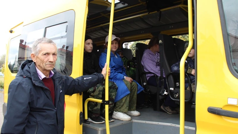«Это мой первый рейс. Привёз пятнадцать школьников из Хуторцов», – пояснил водитель Сергей Ковалев.