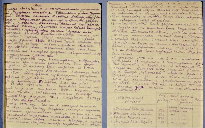 «14 декабря 1942 года ни в чём не повинный гражданин по подозрению в партизанских действиях был арестован и судьба его по настоящее время неизвестна».