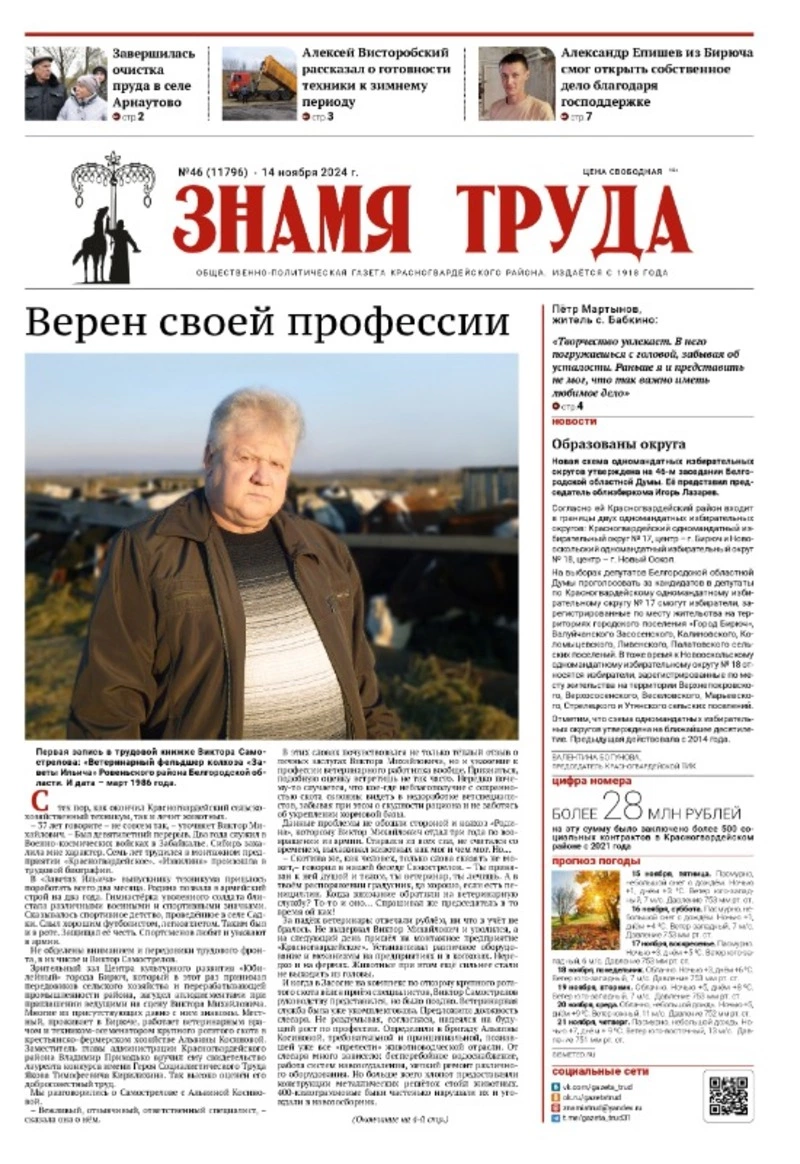 Газета «Знамя труда» № 46 от 14 ноября 2024 года