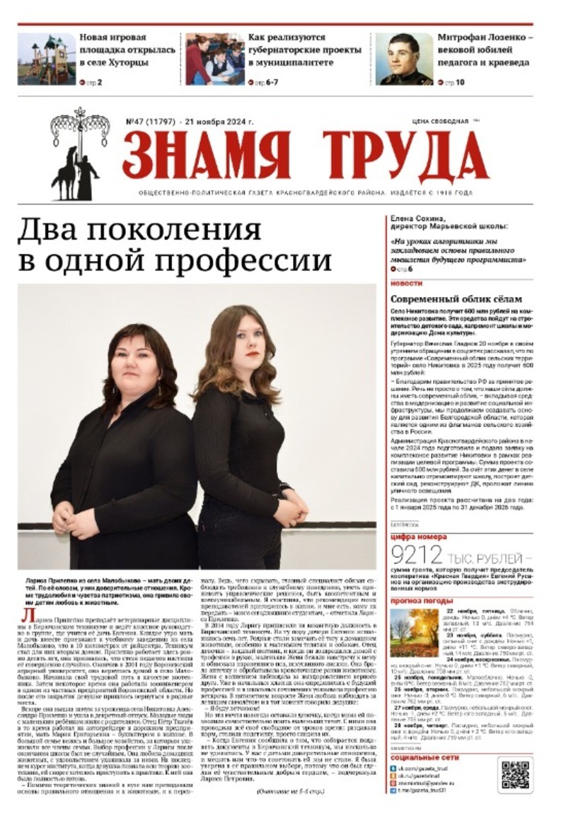 Газета «Знамя труда» № 47 от 21 ноября 2024 года