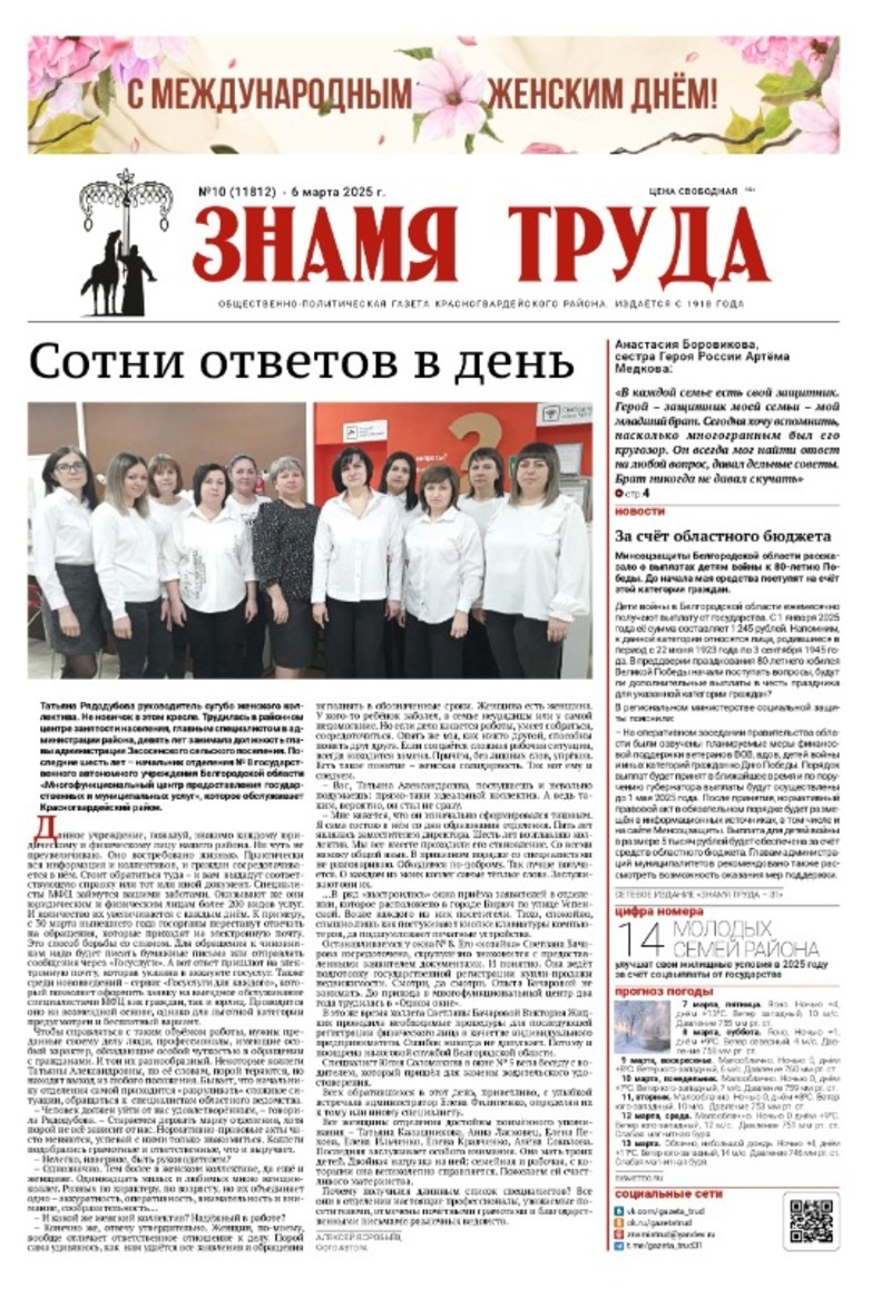 Газета «Знамя труда» № 10 от 6 марта 2025 года