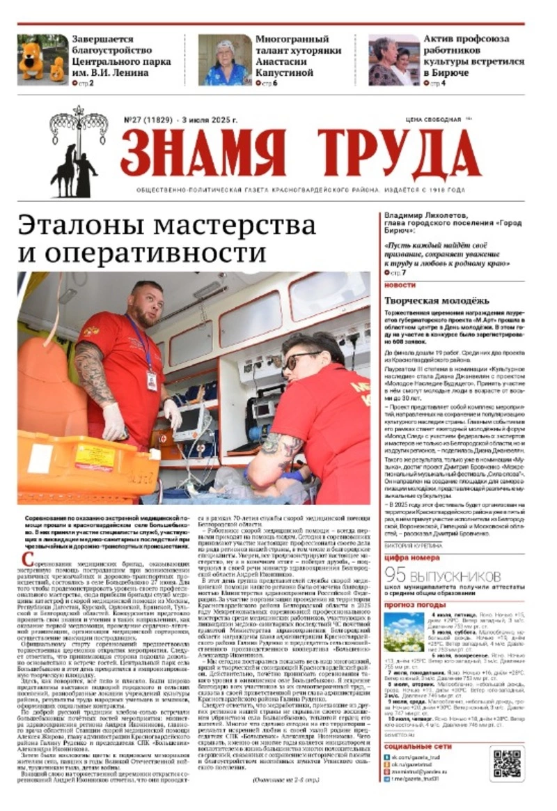 Газета «Знамя труда» № 27 от 3 июля 2025 года
