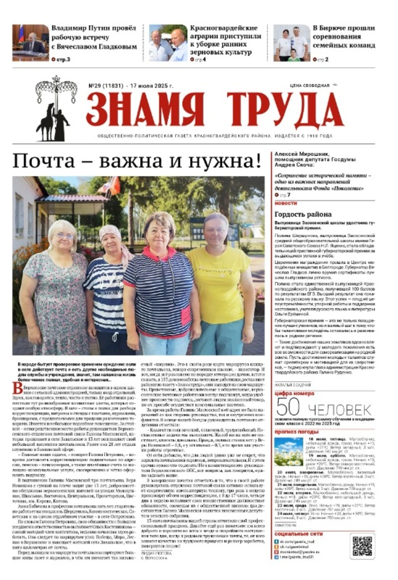 Газета «Знамя труда» № 29 от 17 июля 2025 года