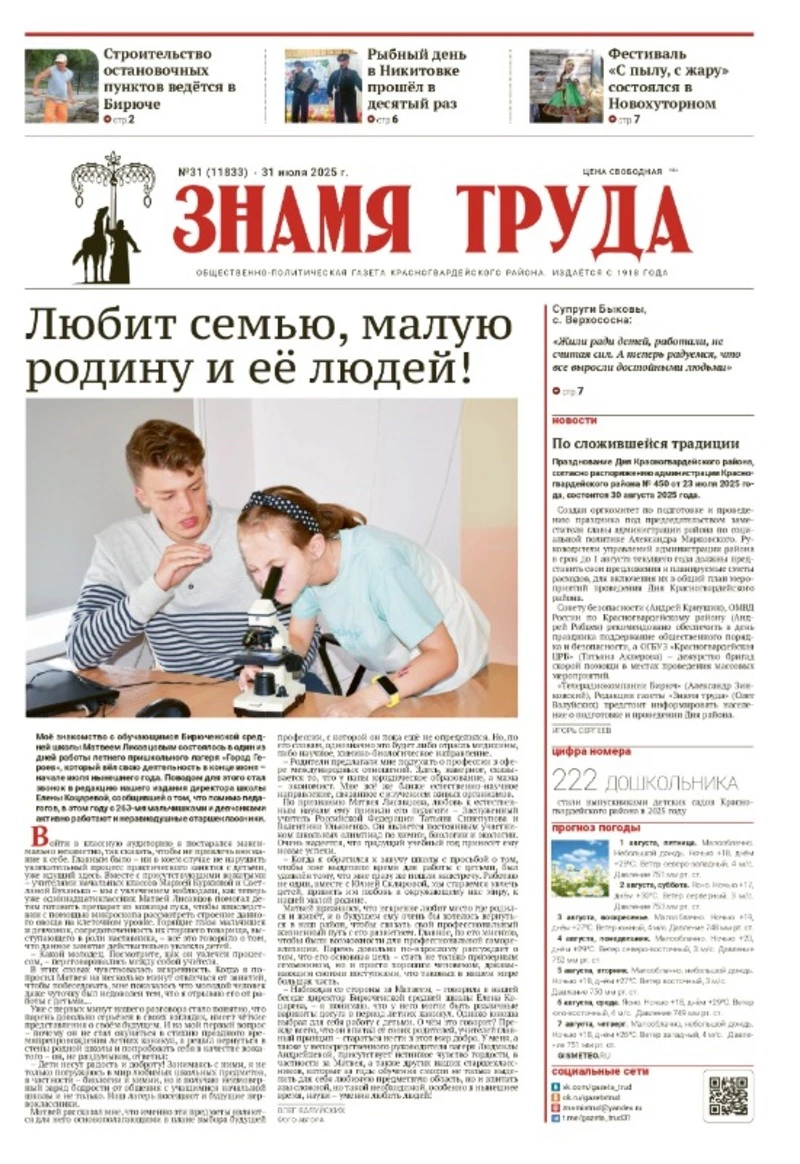 Газета «Знамя труда» № 31 от 31 июля 2025 года