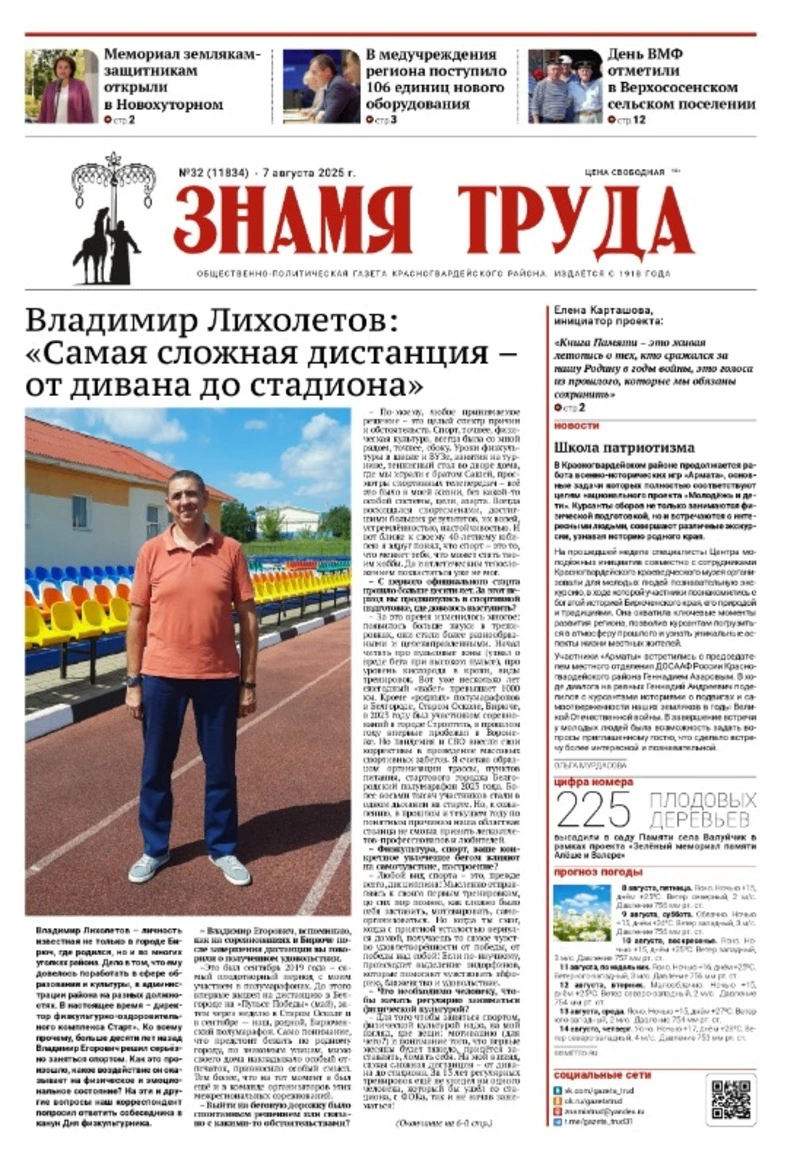 Газета «Знамя труда» № 32 от 7 августа 2025 года
