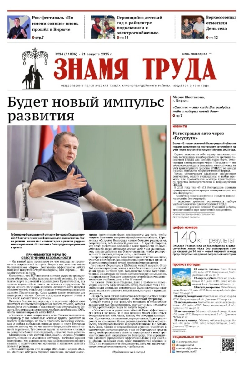 Газета «Знамя труда» № 34 от 21 августа 2025 года