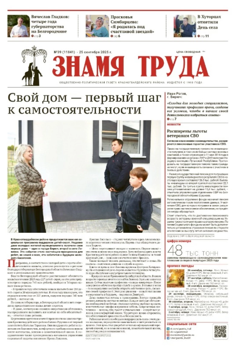 Газета «Знамя труда» № 39 от 25 сентября 2025 года