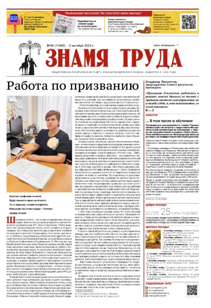 Газета «Знамя труда» № 40 от 2 октября 2025 года