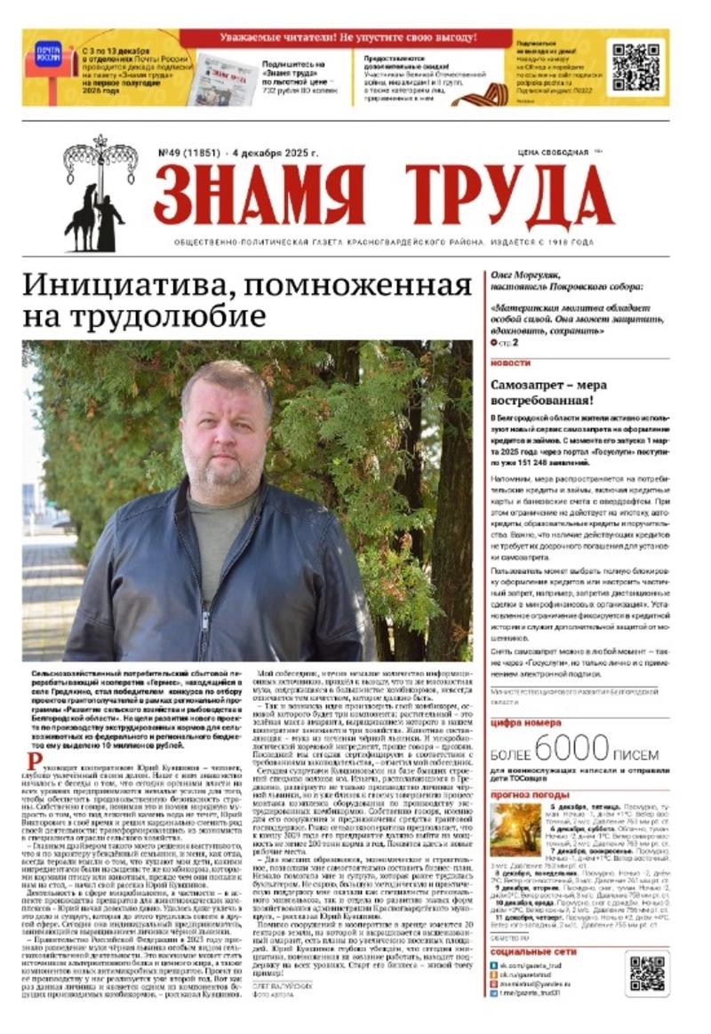 Газета «Знамя труда» № 49 от 4 декабря 2025 года