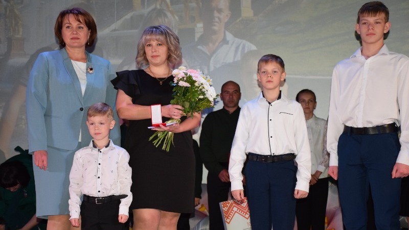 К добрым пожеланиям присоединился и благочинный первого Бирюченского округа, настоятель Покровского собора протоиерей Олег Моргуляк. В этот день на сцене чествовали семью Стародубцевых: Юлию Николаевну и Евгения Николаевича, а также их четверых детей. Накануне многодетная мама получила Почётный знак Белгородской области «Материнская слава» второй степени из рук губернатора Белгородской области Вячеслава Гладкова.