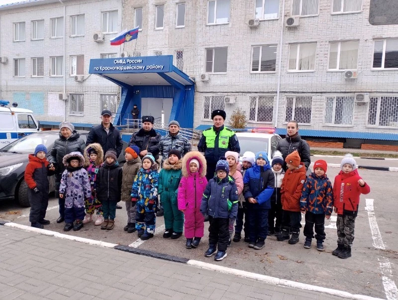 Папа одного из воспитанников, начальник ОМВД России по Красногвардейскому району, подполковник полиции Дмитрий Галактионов рассказал юным гостям о работе сотрудников правоохранительных органов и ознакомил с полицейским транспортом. Сначала ребята рассмотрели автомобиль «буханку», на которой приходится перевозить преступников, а за тем и экипаж ДПС. Дмитрий Анатольевич рассказал, что сотрудники полиции работают в круглосуточном режиме, принимая заявлений и сообщений граждан о административных правонарушениях, преступлениях и происшествиях.