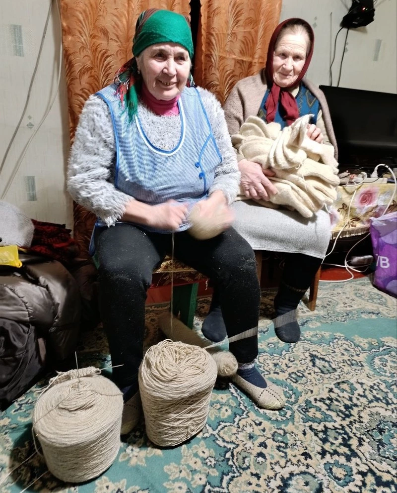 Скромные труженицы тыла с самых первых дней СВО самоотверженно, не смотря на возраст, не жалея времени и сил, вяжут тёплые носки для наших защитников. Это не просто рукоделие, это проявление самой глубокой, материнской любви и преданности. Вначале опытные рукодельницы использовали для изготовления тёплых вещей распущенные свитера, кофты, жилетки. Потом начали выделять из своих пенсий средства на закупку пряжи в магазинах. Но процесс не прекратили. А ещё эти милые сельские жительницы участвуют в формировании гуманитарной помощи военнослужащим, регулярно передают им из своих небогатых запасов огородную продукцию, всевозможные закрутки.