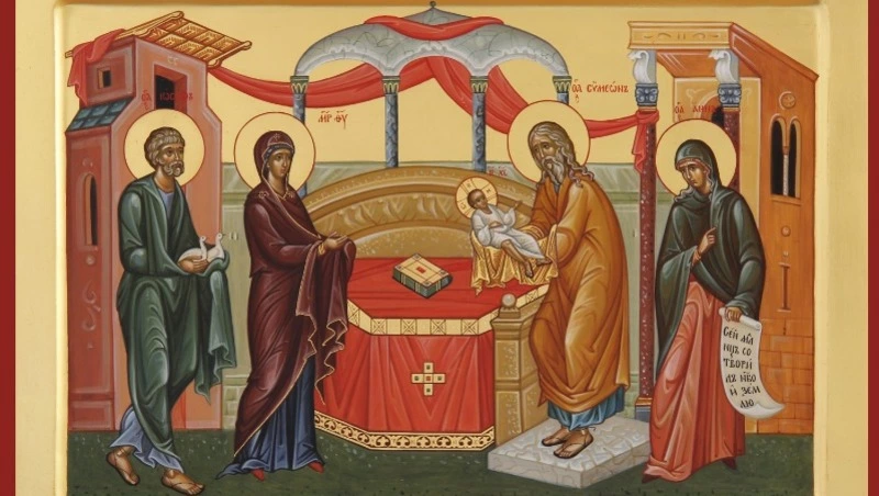По иудейскому обычаю, на 40-й день после рождения ребёнка мать должна была принести в храм очистительную жертву, а если это первенец-мальчик – посвятить его Богу. Мария и Иосиф, живя скромно, принесли в жертву двух голубков.