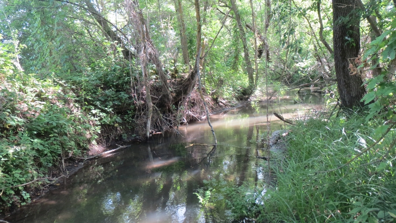 Пойма реки луговая, местами заболочена, извилистая, кое‑где поросшая кустарником, шириной 50–100 м, местами по 200 м.